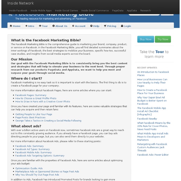 Facebook as a Marketing Tool Final Project BUS 107 Web 2.0 and its Business Applications “The Facebook Marketing Bible: 24 ways to market your brand, company, product, or service inside facebook”. Inside Facebook. December 9 th, 2007 ... Fetch Doc